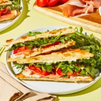 Primo Prosciutto Sandwiches with Ricotta, Tomato & Balsamic Arugula Salad