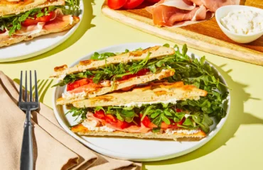 Primo Prosciutto Sandwiches with Ricotta, Tomato & Balsamic Arugula Salad